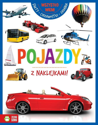 Pojazdy - fakty, ciekawostki i zadania! Wszystko wiem! to seria dla dzieci w wieku 6-8 lat. Najlepszą formą poznawania świata i budowania podstaw wiedzy dla dziecka w tym wieku jest zabawa. Dlatego proponujemy kreatywne książeczki edukacyjne o zróżnicowanej tematyce, która zainteresuje zarówno dziewczynki, jak i chłopców. Każda z książek nie tylko prezentuje bardzo ciekawe informacje, ale także zaprasza dziecko do aktywnej zabawy oraz skłania do myślenia, ponieważ zawiera ćwiczenia, polecenia, łamigłówki oraz ogromną liczbę naklejek. Bawi oraz uczy kreatywności, samodzielnego rozwiązywania zadań, pozwala poczuć smak satysfakcji ze zdobywania wiedzy.